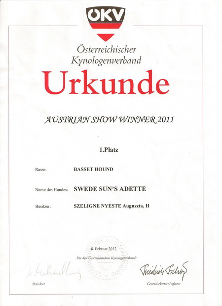 SWEDE SUN'S ÁDETTE is No 1 Basset Hound in Austria of 2011